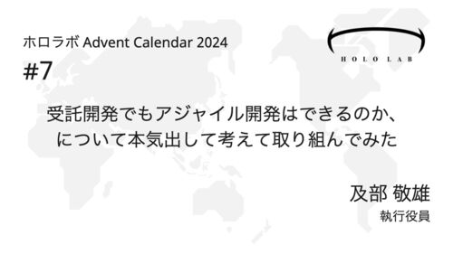 ホロラボ Advent Calendar 2024の7日目の記事です。 adventar.org はじめまして、2024年12月から執行役員に就任した及部です。得意分野である「アジャイル開発」をテーマに記事を書きました。 「ホロラボとアジャイル開発」 受託開発でもアジャイル開発はで…